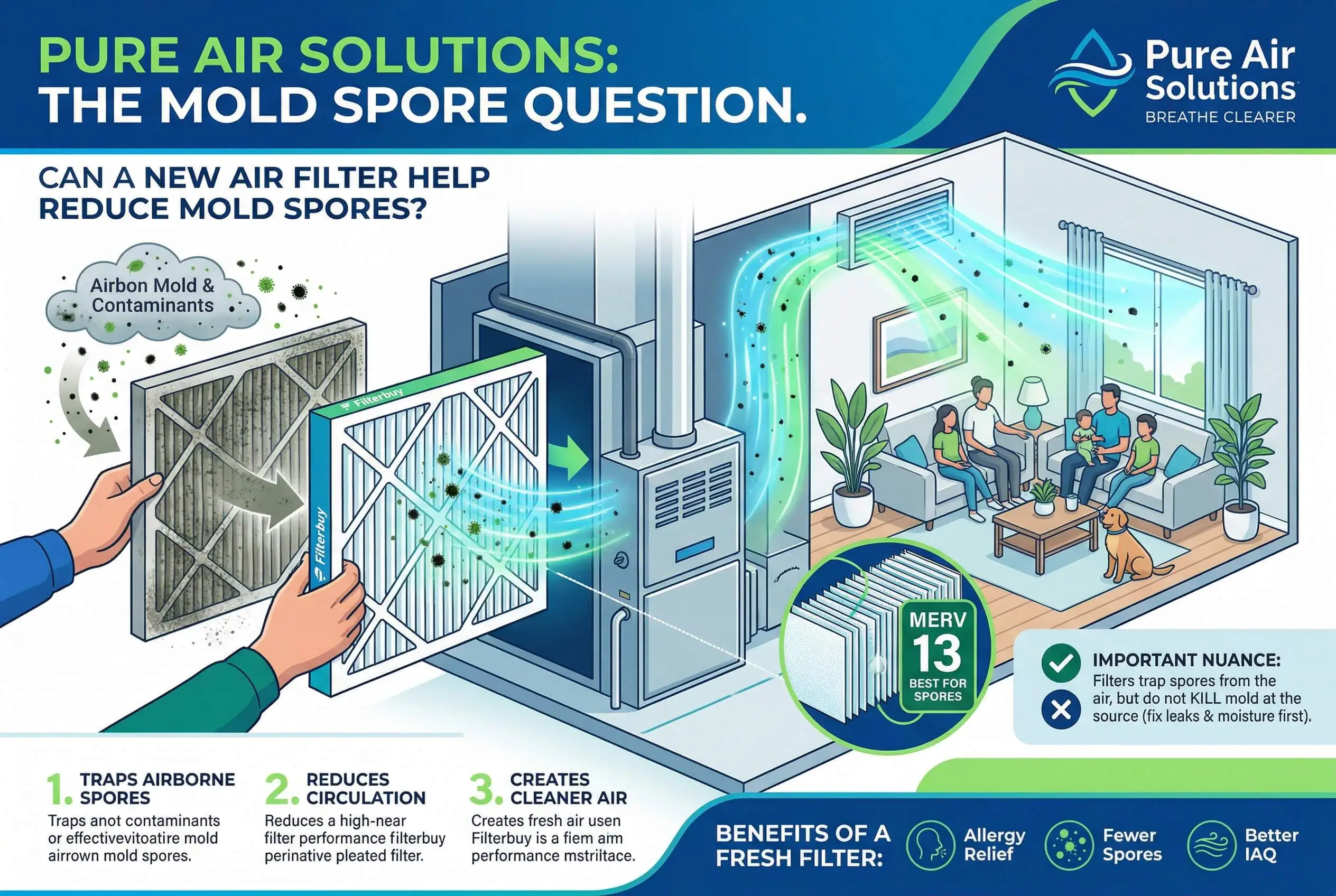 A filter that's rated too low, overdue for a change, or the wrong size for your system lets those spores pass right through. In our experience manufacturing filters for over a decade, this is one of the most common and correctable air quality failures we see across millions of households.